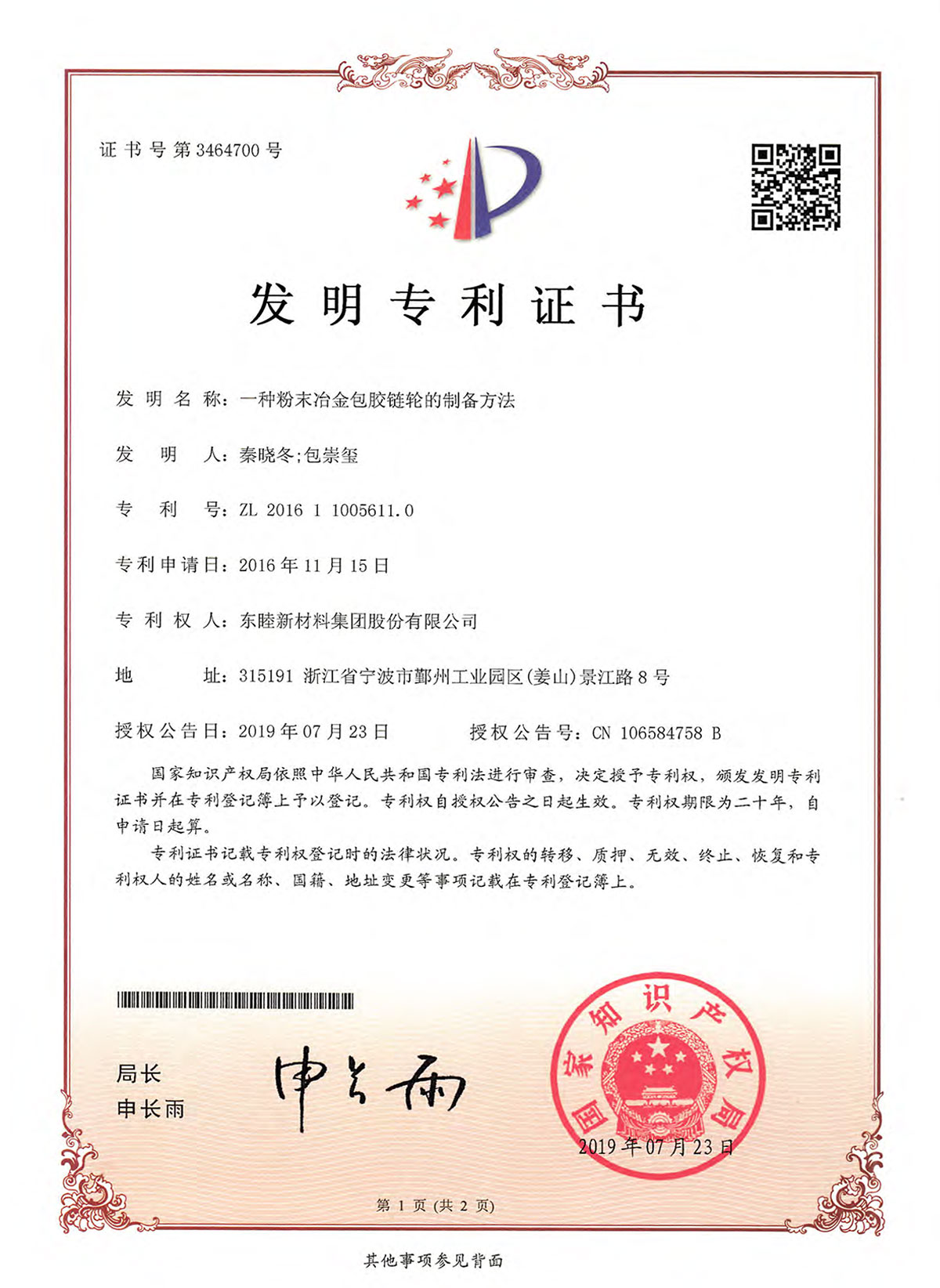 華東五省一市粉末冶金大會貢獻(xiàn)獎(組合鏈輪)