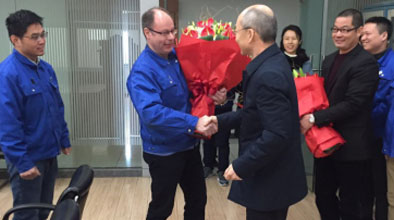 鄞州區(qū)委書(shū)記胡軍來(lái)到公司,走訪慰問(wèn)了德克、聶軍武、顏巍巍等專家人才...