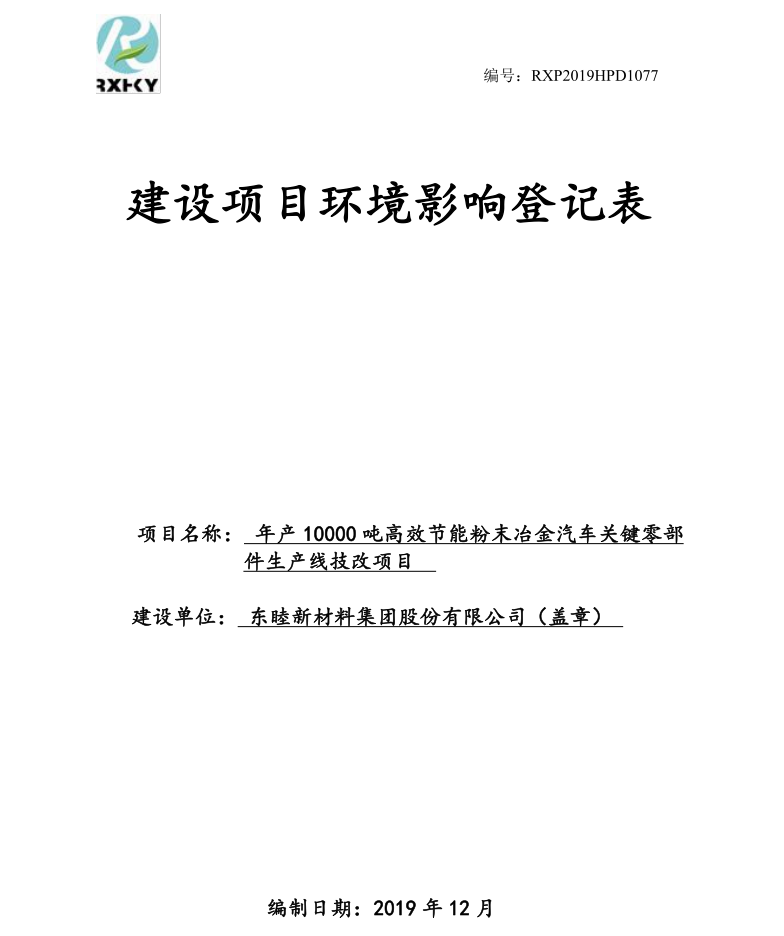 東睦新材料集團股份有限公司年產(chǎn)10000噸高效節(jié)能粉末冶金汽車關(guān)鍵零部件生產(chǎn)線技改項目