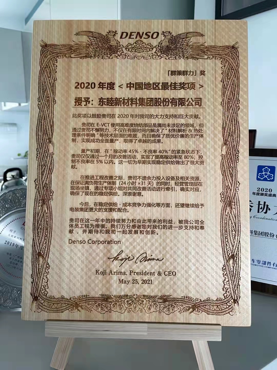 電裝集團(tuán)為東睦集團(tuán)頒發(fā)“群策群力獎(jiǎng)”